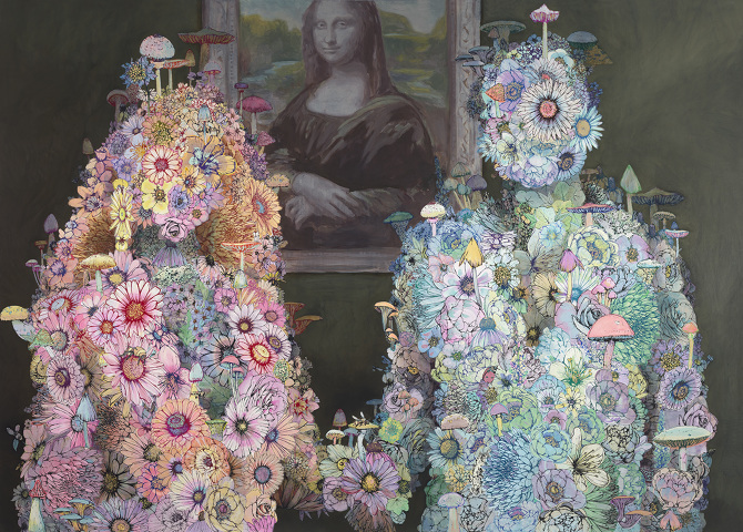 Survivor (The Carters), 2019 Acrylic, Ink, Oil, and Vellum on Canvas 60 x 84 inches